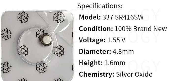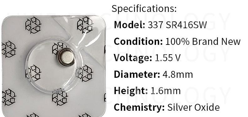 Be the first to review “337 Battery SR416SW 1.55V Silver Oxide Battery Watch Hearing Aid Single Grain Packing Button Cell for Mini Earpiece” Cancel reply
